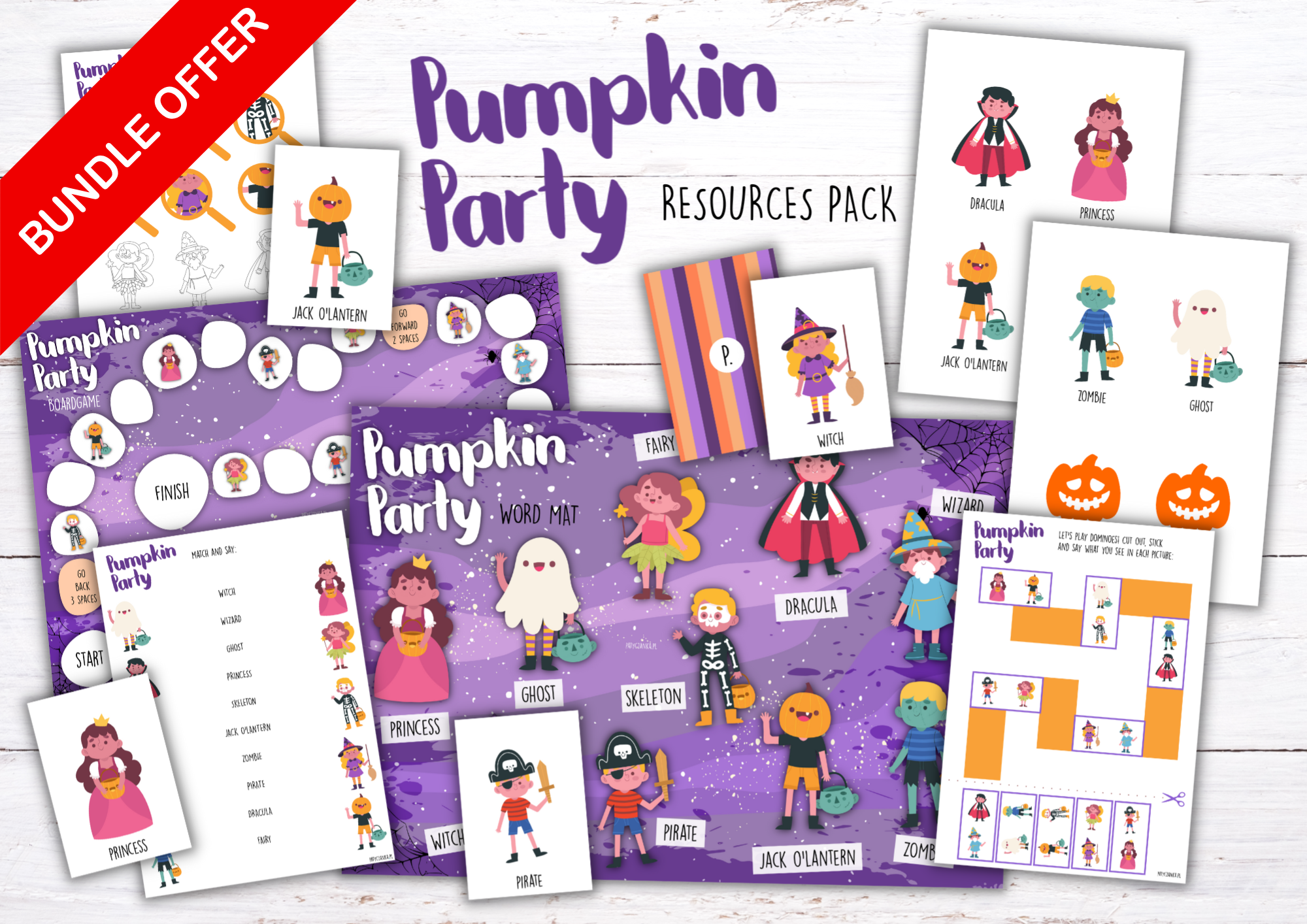✅ Pakiet Edukacyjny Halloween/Pumpkin – karty pracy i propozycje zabaw językowych.