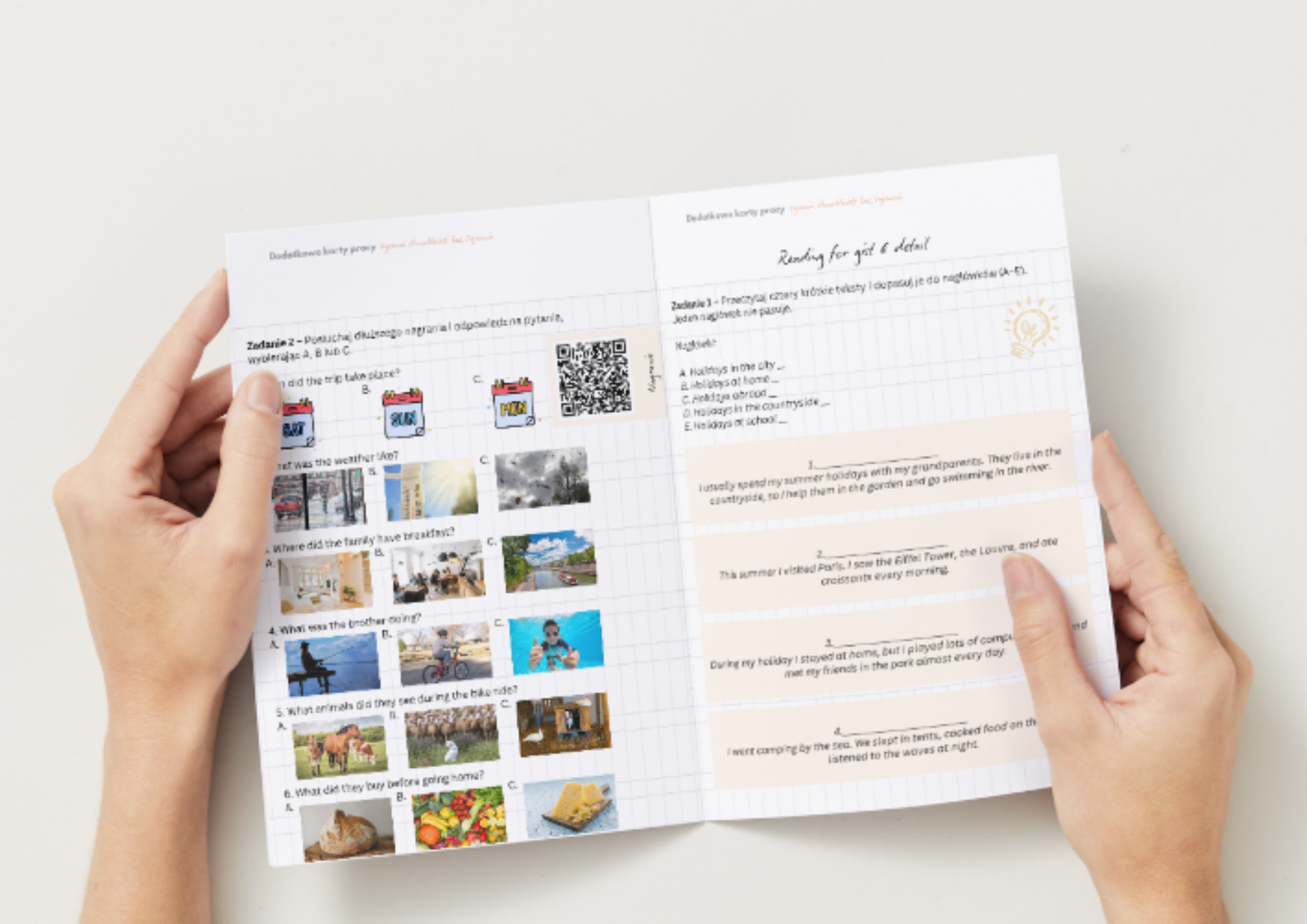 E-book idealnie sprawdzi się zarówno w pracy indywidualnej ucznia, jak i na lekcjach powtórkowych w szkole czy na kursie językowym. Można go wykorzystać elastycznie – jako pełne zestawy lub pojedyncze zadania, w parach, grupach lub do pracy domowej.