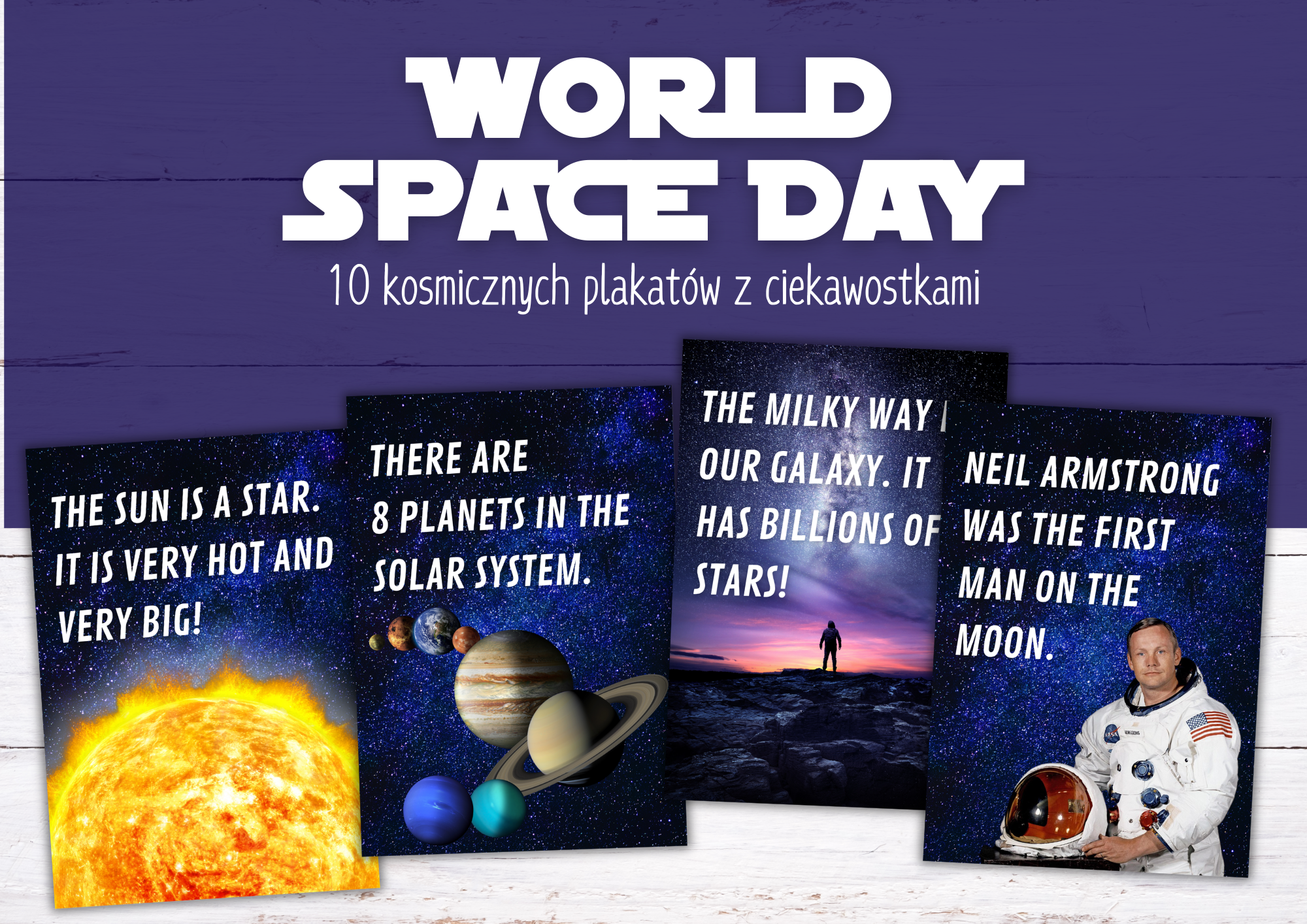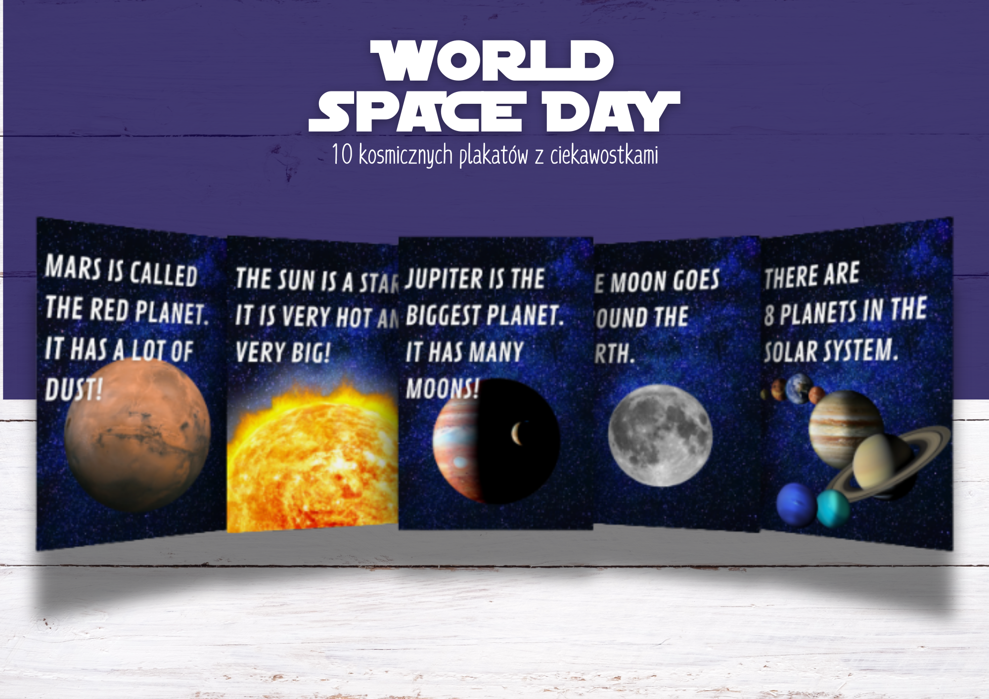 Ten zestaw 10 kosmicznych plakatów z prostymi faktami po angielsku to świetny sposób na wprowadzenie tematu kosmosu, planet, gwiazd i astronautów w klasie lub na zajęciach językowych.